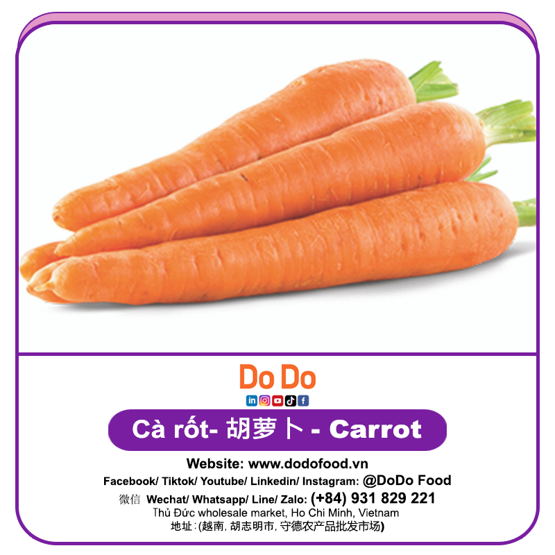 Hiện này đang nhập khẩu trực tiếp từ Trung quốc mặt hàng cà rốt thùng, cà rốt xếp. Đây là tiêu chuẩn nhập hàng của DODO FOOD: