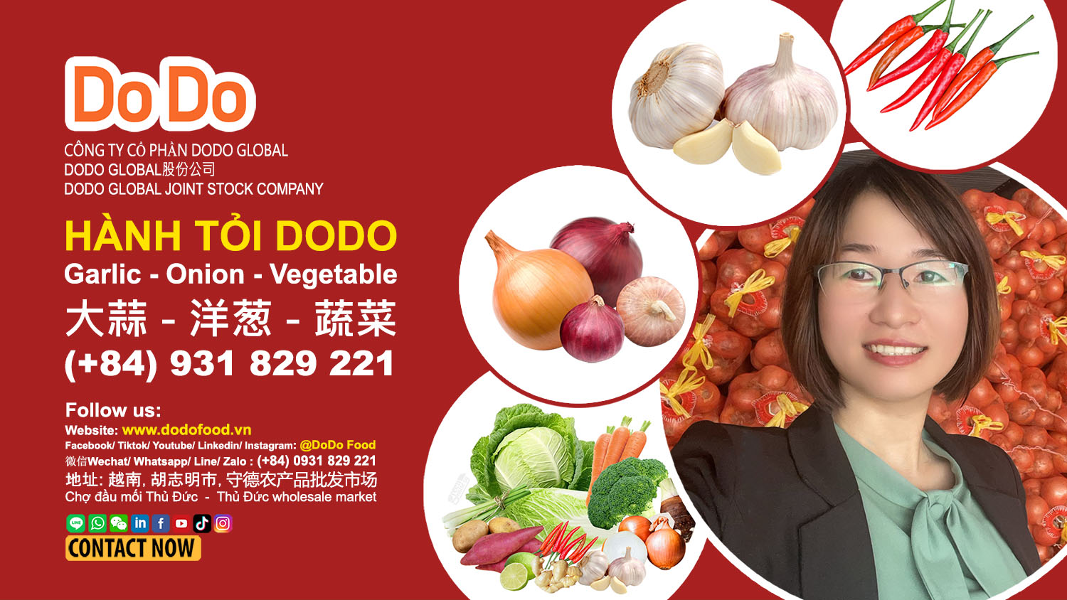 Công ty cổ phần DoDo Global một trong những đơn vị chuyên về xuất nhập khẩu, phân phối và mua bán hành tây, tỏi , rau củ quả tại Việt Nam. Với nhiều năm kinh nghiệm trong lĩnh vực nông sản, đặc biệt là tỏi và hành tây, gừng, ớt, nông sản. DODO đã khẳng định vị thế của mình trên thị trường trong nước và quốc tế.