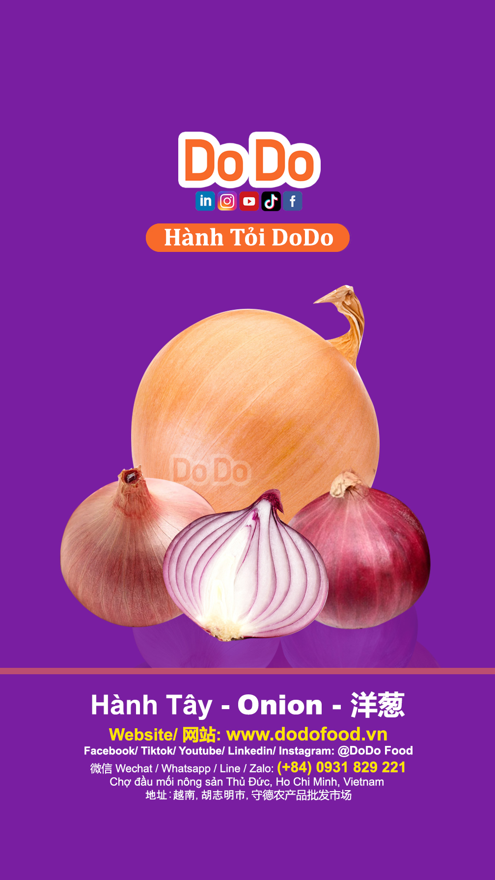 DODO在农业市场上拥有强大的影响力,为国内外买家提供高质量的大蒜、洋葱、土豆、生姜、辣椒、胡萝卜、蔬菜和水果,确保价格竞争力强且来源可靠,并出口越南农产品。