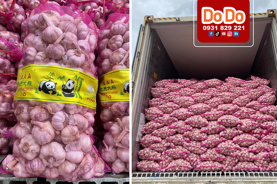 Quy trình xuất khẩu: Tỏi được phân loại, đóng gói (thường trong túi lưới, thùng carton) và vận chuyển bằng container lạnh để đảm bảo chất lượng trong suốt hành trình.